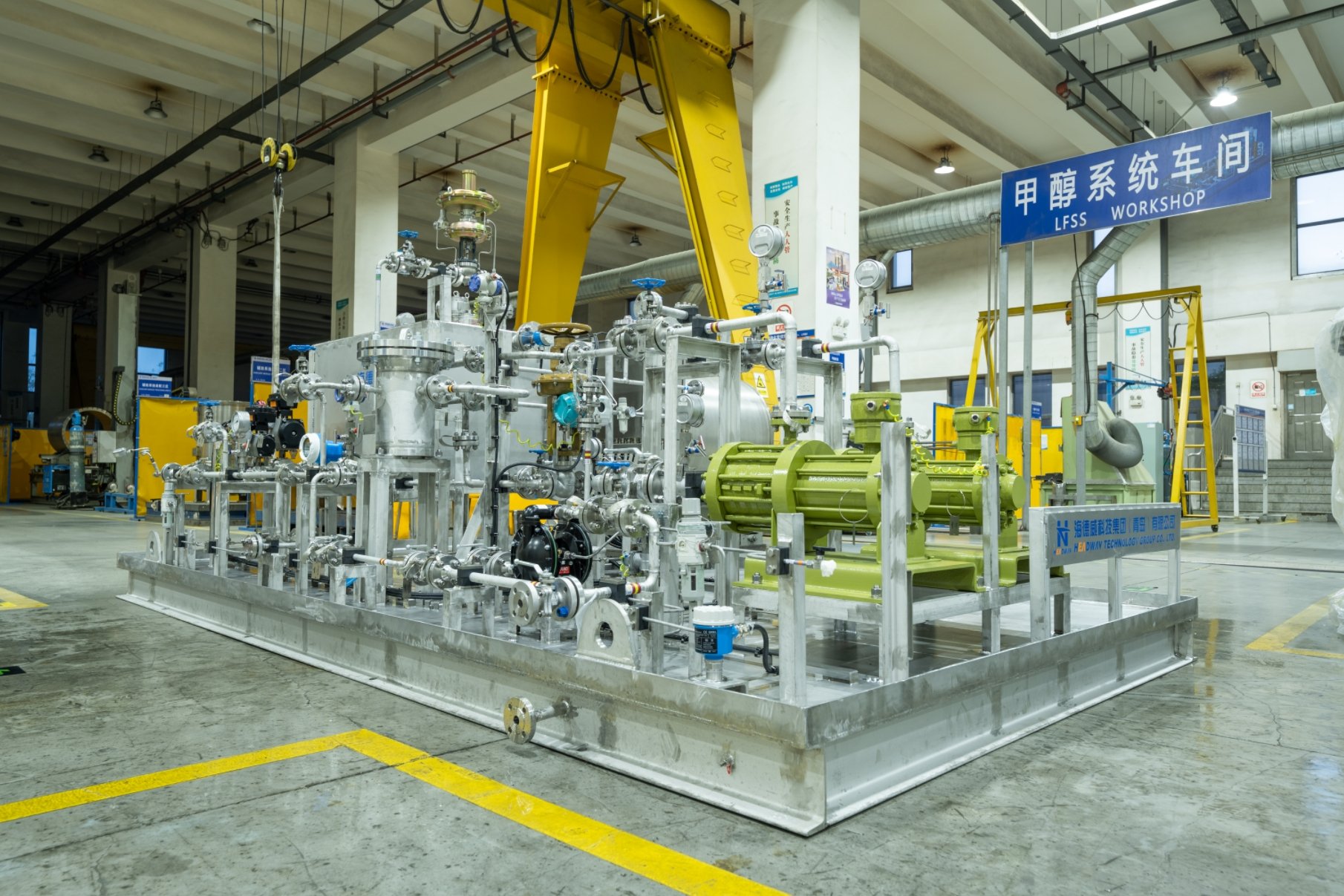 中船發(fā)動(dòng)機(jī)有限公司大柴公司甲醇雙燃料試車平臺(tái),配備了由海德威科技集團(tuán)提供的涵蓋甲醇燃料供給模塊、加注儲(chǔ)存系 統(tǒng)、輔助換熱系統(tǒng)、氮?dú)庀到y(tǒng)以及控制安保系統(tǒng)等核心模塊在內(nèi)的一站式系統(tǒng)解決方案。該方案及其配套模塊由海德威自主 研發(fā)和生產(chǎn),是國產(chǎn)首個(gè)成功應(yīng)用的甲醇燃料供給系統(tǒng)成熟解決方案。